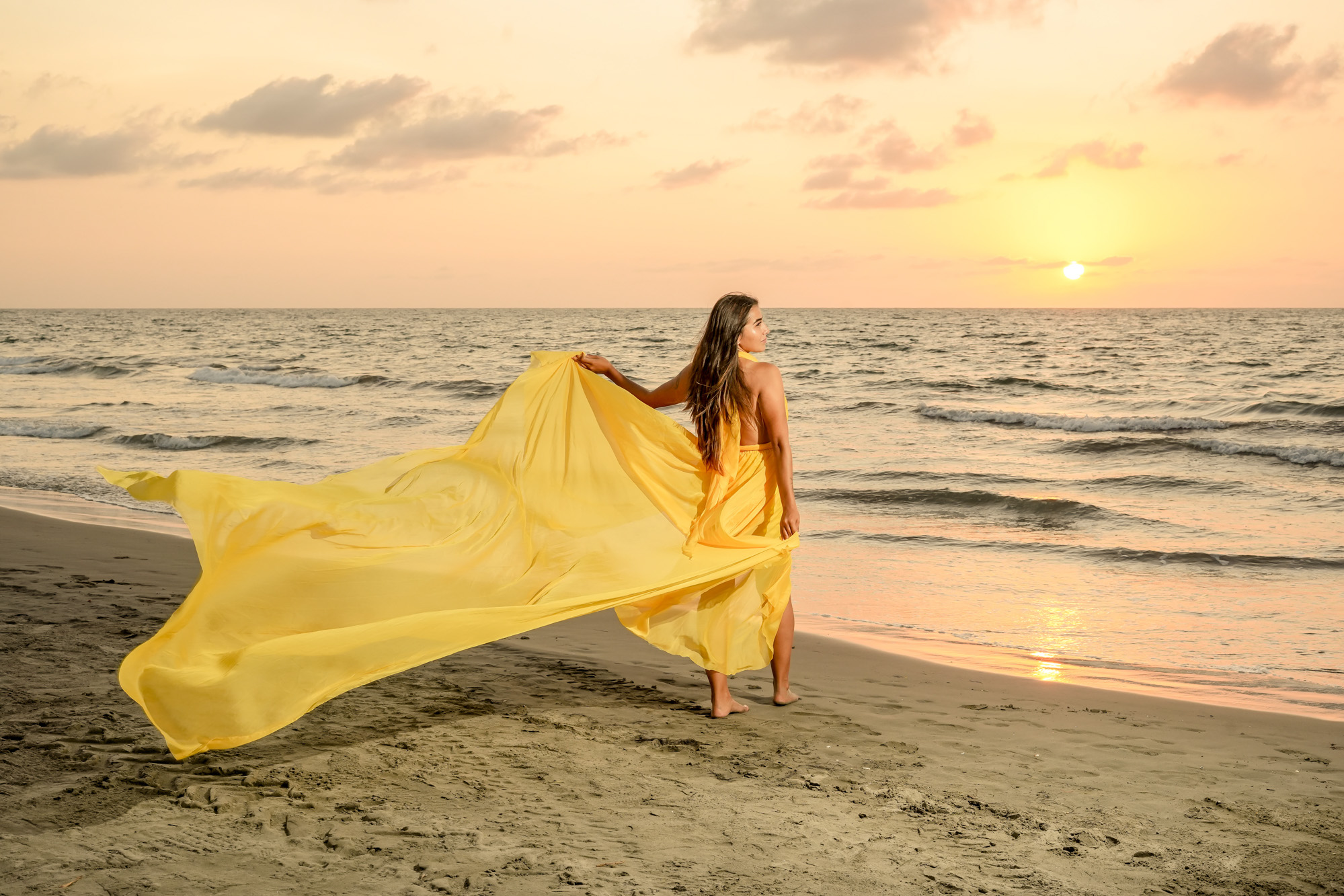 A brand-new service now in Cartagena! We bring it to you so you can take home an unforgettable memory of the city. Your photo session includes the flying dress in different colors. We also have a medium-train dress that spins beautifully, making the flying effect easier to capture.
